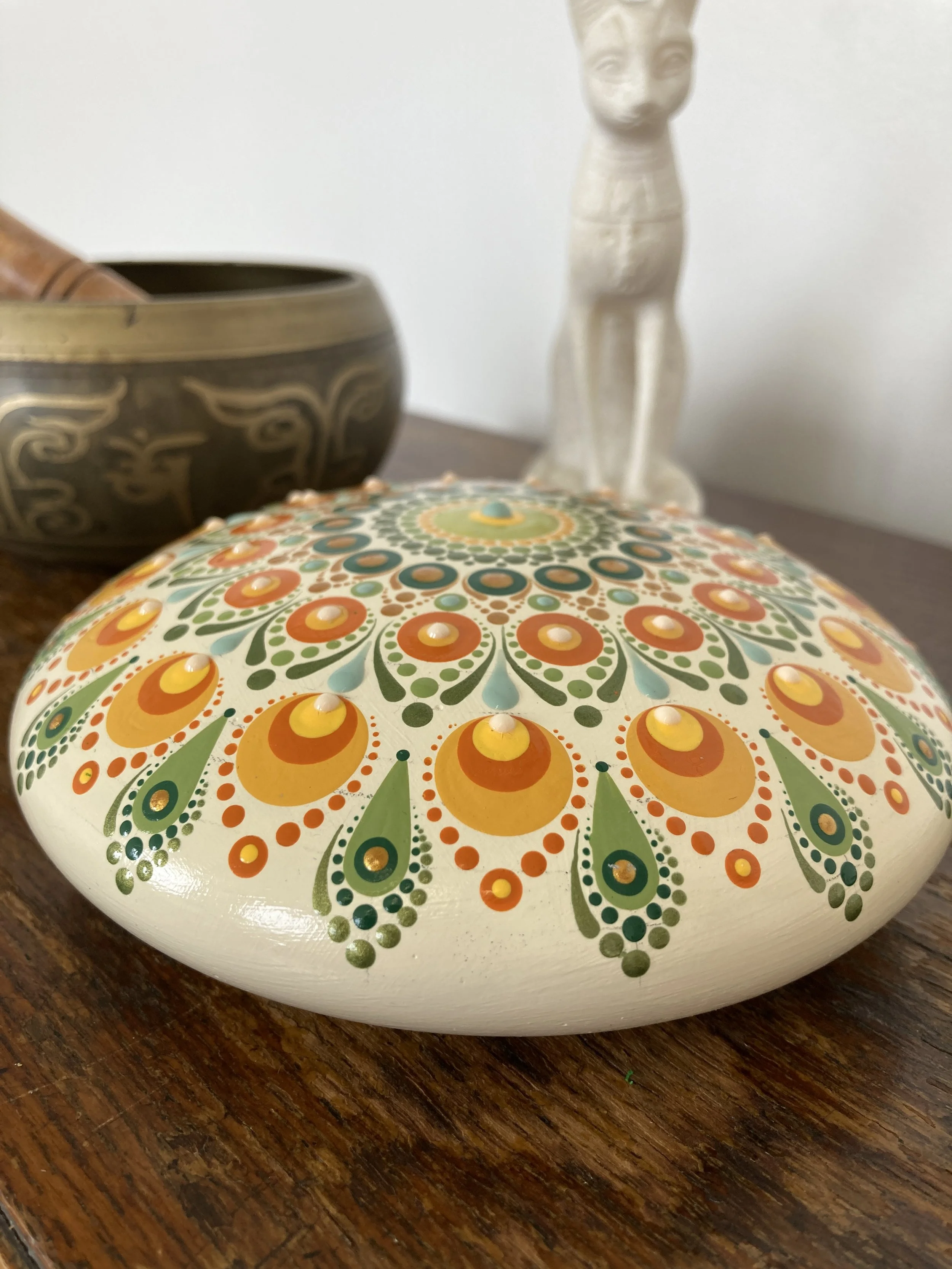 There is nothing I love more than being able to create bespoke, custom pieces. Whether it be wall art, stones or tea light holders, I will work with you to create something special to your taste. I create custom work for anybody who would like to add some mandala magic to their space - be it a private home, a business or a community or public space.