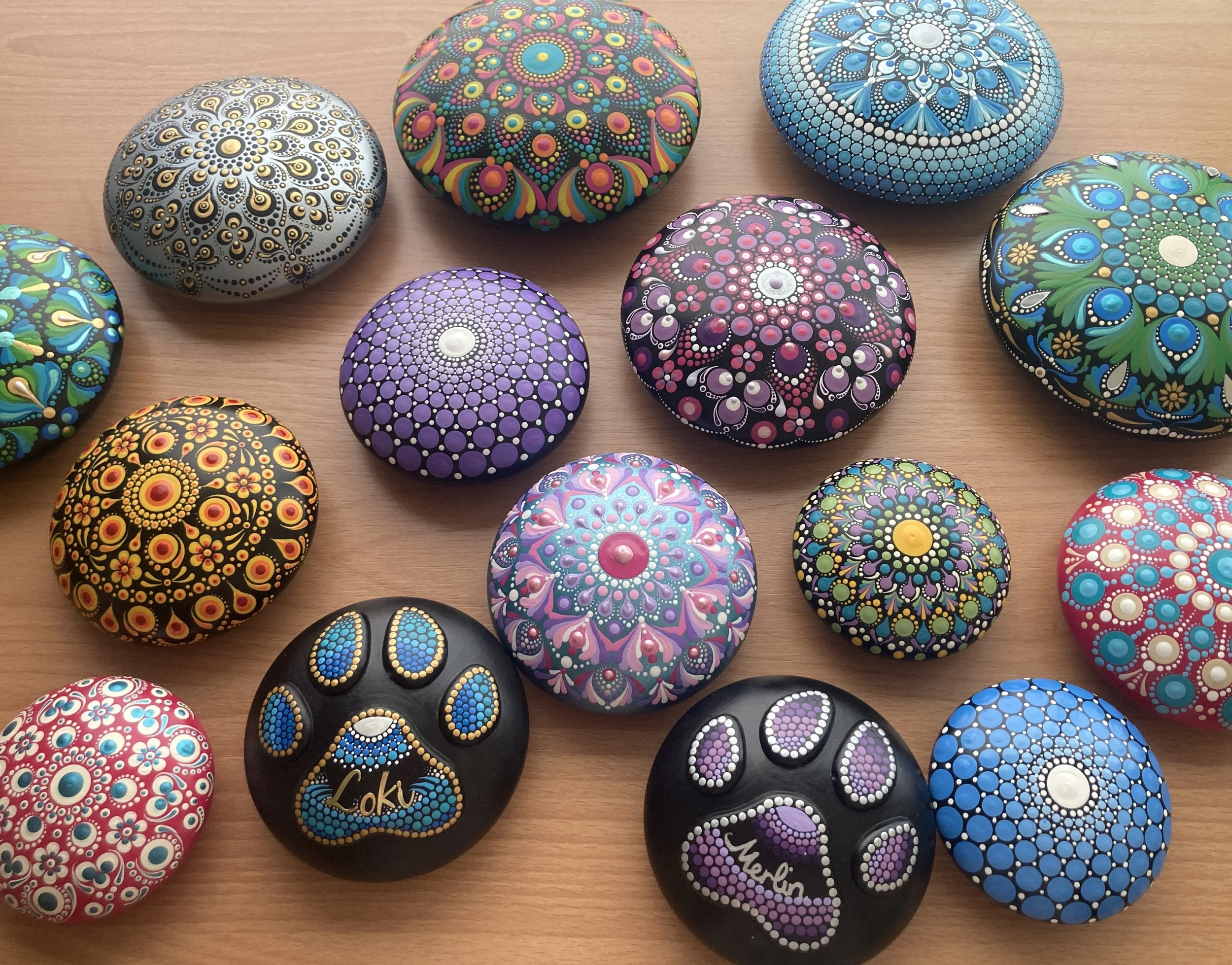 There is nothing I love more than being able to create bespoke, custom pieces. Whether it be a mandala painting, stones or tea light holders, jewellery or any other item, I will work with you to create something special to your taste. I create custom work for anybody who would like to add some mandala magic to their space - be it a private home, a business or a community or public space.